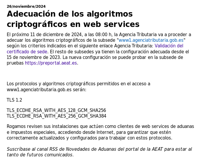 Aunque la AEAT soporta TLS 1.3, no está activado por compatibilidad.